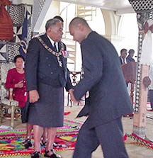 From Fijivillage (31 July 2001, posted 4 August) Recipients of the Order of Fiji medals finally got their awards on Friday [3 August]. This follows postponement of the ceremony from last year following the political crisis. One of the Recipients of the Order Fiji is former FM96 personality, Frank Taukave. He is being recognised for his bravery following a drowning incident in 1999 at Suva's King wharf.