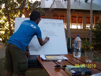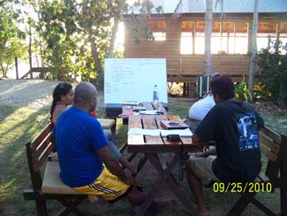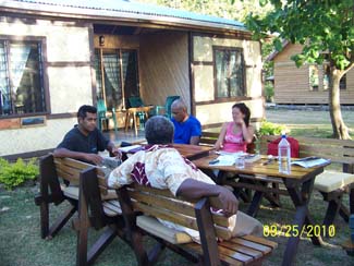 | From Alfred Iane Ralifo (30 September 2010) On Saturday the 26th of September, Monifa and I on behalf of LajeRotuma Initiative travelled to Botaira Eco-Resort on Naviti in the Yasawa group of islands with Viliame Koyamaibole to meet with representatives of Tikina Naviti Conservation Initiative (TNCI). During the meeting, a MOU was signed between LRI and TNCI officially sealing the partneship between these two Initiatves that started two years ago. LRI will share our expereinces and lessons learnt through our work with the community of Rotuma by providing technical assistance to TNCI through the various activities that they have planned in their quest to sustainably manage their natural resources and protect their unique island biodiversity. One of the contributing factors to the sustainability of LajeRotuma Initiative over the last nine years is that the programmes that were implimented on the island of Rotuma are replicable and it is our greatest pleasure to reach out and assist another similar island community who is also taking the initiative to protect their natural and cultural heritage. It is with great hope that this cultural exchange opportunity between these two Initiatives will benefit both the island communities of Rotuma and Naviti and will be the beginning of a network of Community Based Organisations from various islands within Fiji, the Pacific and the whole world.